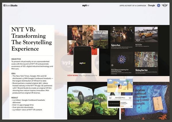 《紐約時(shí)報(bào)》旗下的原生廣告部門(mén) T Brand Studio 就是這樣一個(gè)典型的例證。它成立于 2014 年,其業(yè)務(wù)范圍包括為品牌主撰寫(xiě)新聞格式的贊助文章、制作信息圖和視頻。在短短三年的時(shí)間里,T Brand Studio 已經(jīng)成長(zhǎng)為《紐約時(shí)報(bào)》收入增長(zhǎng)最快的部門(mén)。在今年的戛納國(guó)際創(chuàng)意節(jié)上,T Brand Studio 還憑借著 VR 新聞應(yīng)用和 VR 短片《流離失所者》拿下了移動(dòng)類和娛樂(lè)類兩項(xiàng)全場(chǎng)大獎(jiǎng)。