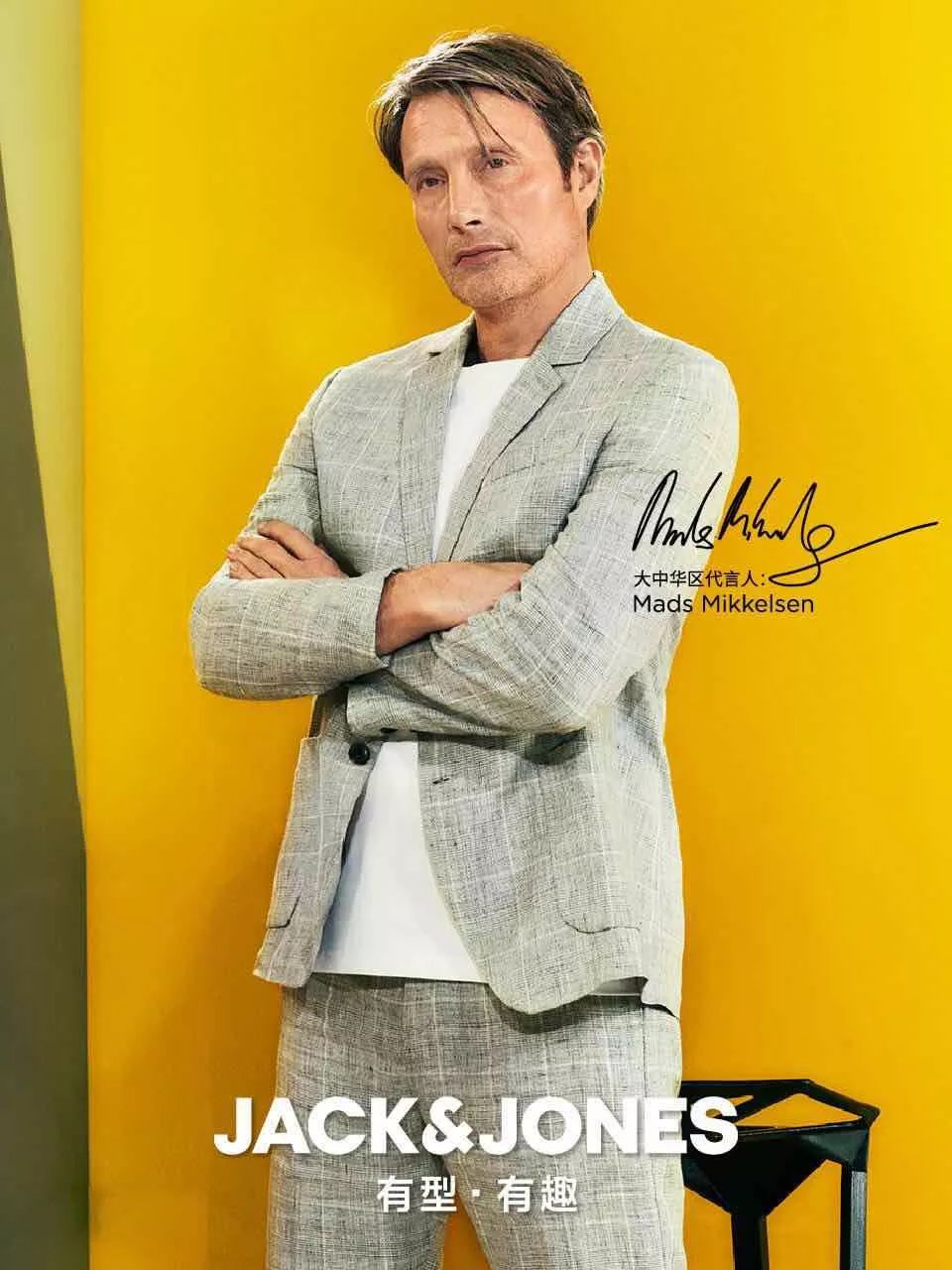 JACK & JONES提出新派“型”為美學,傳達出“有型““有趣”的品牌格調。邀請丹麥著名男演員麥斯·米科爾森與中國青年演員鄧倫共同擔任大中華區(qū)品牌形象大使,演繹不同風格的型趣形象。