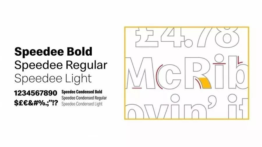 除了紅黃顏色的更改,麥當勞對字體的使用也作了要求,統(tǒng)一運用Speedee字體,分別有3中字重選擇。