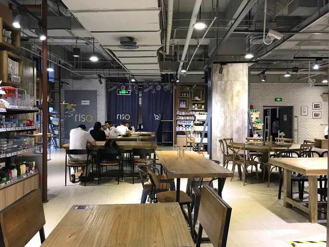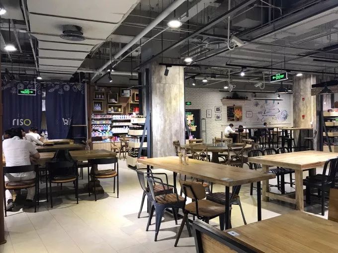 3. RISO周邊1公里范圍內(nèi)分布超過(guò)10家購(gòu)物中心和商業(yè)綜合體,周邊學(xué)校、住宅區(qū)、寫(xiě)字樓皆分布密集,為RISO帶來(lái)了多樣化的客群資源,為未來(lái)更多的探索和試驗(yàn)提供環(huán)境;然而密集的商業(yè)布局也構(gòu)成對(duì)RISO的競(jìng)爭(zhēng)壓力,尤其是盒馬鮮生上海灣店就在400米距離內(nèi),寶騏小伙伴們當(dāng)天中午先到RISO后到盒馬,兩處人氣可謂冰火兩重天。