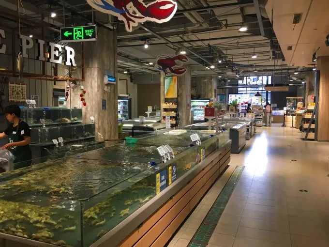 業(yè)態(tài)分布:一層生鮮超市,包括海鮮、水產(chǎn)、蔬菜、水果、肉類(lèi)等,二層包括餐飲檔口、進(jìn)口商品、漂流書(shū)吧等