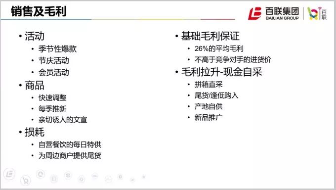 6)整體的毛利設(shè)置是市場(chǎng)中間檔,通過(guò)增值服務(wù)(如加工、組合)提高毛利;據(jù)百聯(lián)集團(tuán)前期對(duì)項(xiàng)目的介紹,平均毛利在26%。