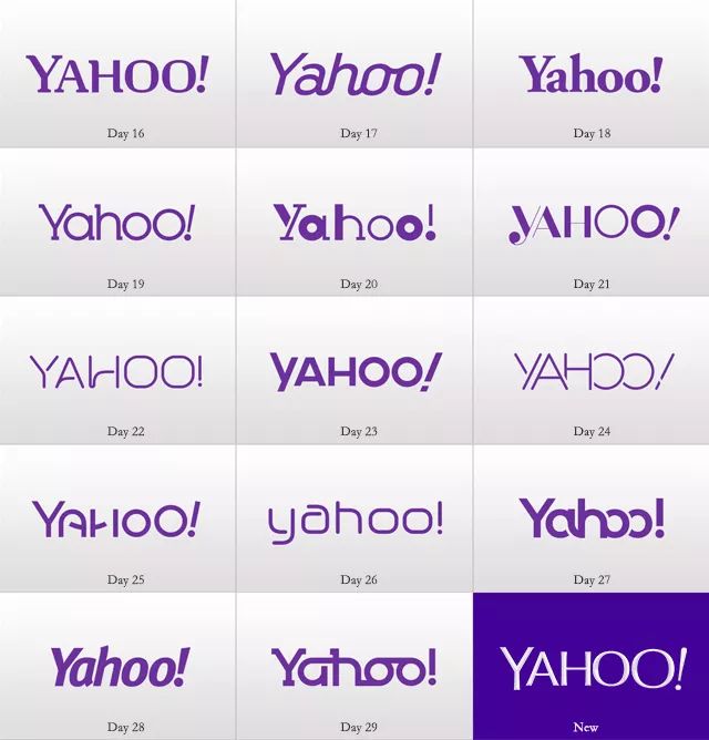 2013年雅虎就靠LOGO刷存在感了,當(dāng)時在一個月內(nèi)連續(xù)更換了30個標(biāo)志(見上圖)。這都2019了現(xiàn)在雅虎還是一蹶不振。接下來我們看看全新的雅虎LOGO,由著名品牌設(shè)計公司Pentagram,也叫五角設(shè)計公司操刀設(shè)計。