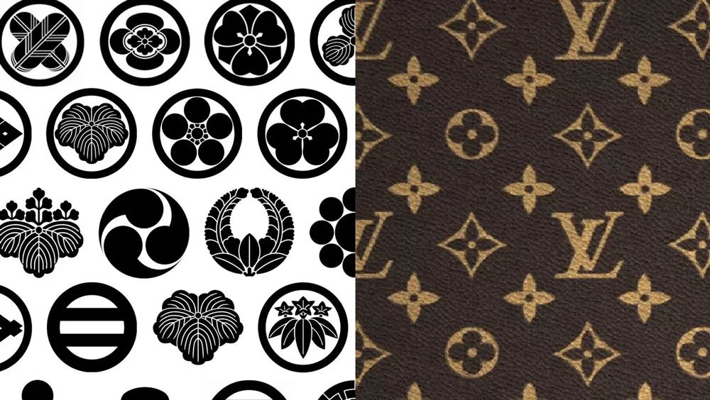 深受日本美學(xué)風(fēng)潮影響的佐治·威登隨后在設(shè)計中融入了更多和日本有個的元素,比如LV沿用至今的Monogram圖案不止和日本文字及櫻花有關(guān),那些圓形和星形紋飾亦來自日本家徽的設(shè)計,Mon在日語中就有家徽的意思。