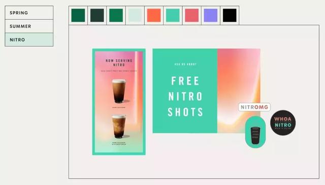 星巴克除了主色和輔助色,還根據(jù)不同季節(jié)也設(shè)定了一些顏色,讓人們能感受到品牌也在隨著季節(jié)的變化而變化,真是考慮的太貼心了。