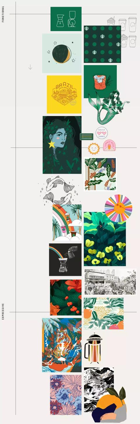 最近星巴克公開了品牌視覺識別系統(tǒng),而創(chuàng)意總監(jiān) Ben Nelson 表示:“是因?yàn)槭艿狡渌放频膯l(fā),因此希望將團(tuán)隊(duì)的創(chuàng)作過程透明化,將成果分享給大家?!?/span>