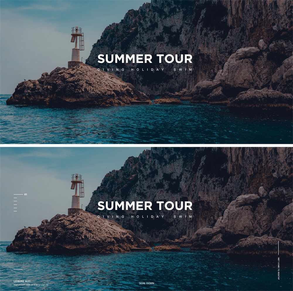 輔助小元素的有無(wú)對(duì)于畫(huà)面整體的影響還是很直觀的,這些元素的使用大大增加了畫(huà)面整體的裝飾感和豐富度,可以起到很好的避免畫(huà)面「空」現(xiàn)象的出現(xiàn),而且這類(lèi)輔助小元素的優(yōu)勢(shì)相比水印文字: