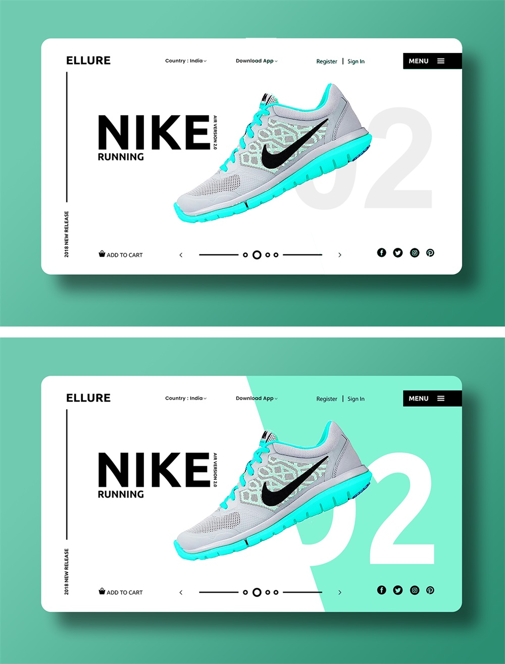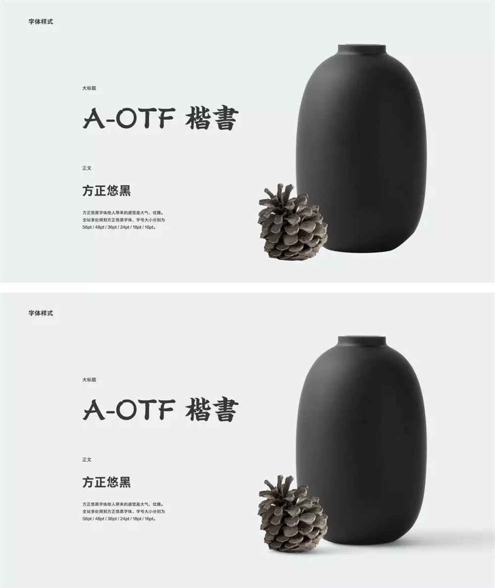 同樣是產(chǎn)品+文案,上下的差距一目了然,之所以會(huì)呈現(xiàn)出這樣的視覺(jué)感受在于對(duì)留白的運(yùn)用,也就是視覺(jué)比例關(guān)系,當(dāng)整體比例關(guān)系運(yùn)用得當(dāng)時(shí),哪怕只是產(chǎn)品和文案,不添加任何輔助元素和效果,也不會(huì)給我們「空」的視覺(jué)感受;各個(gè)元素的視覺(jué)比例不恰當(dāng)也會(huì)是造成畫(huà)面「空」的原因之一。