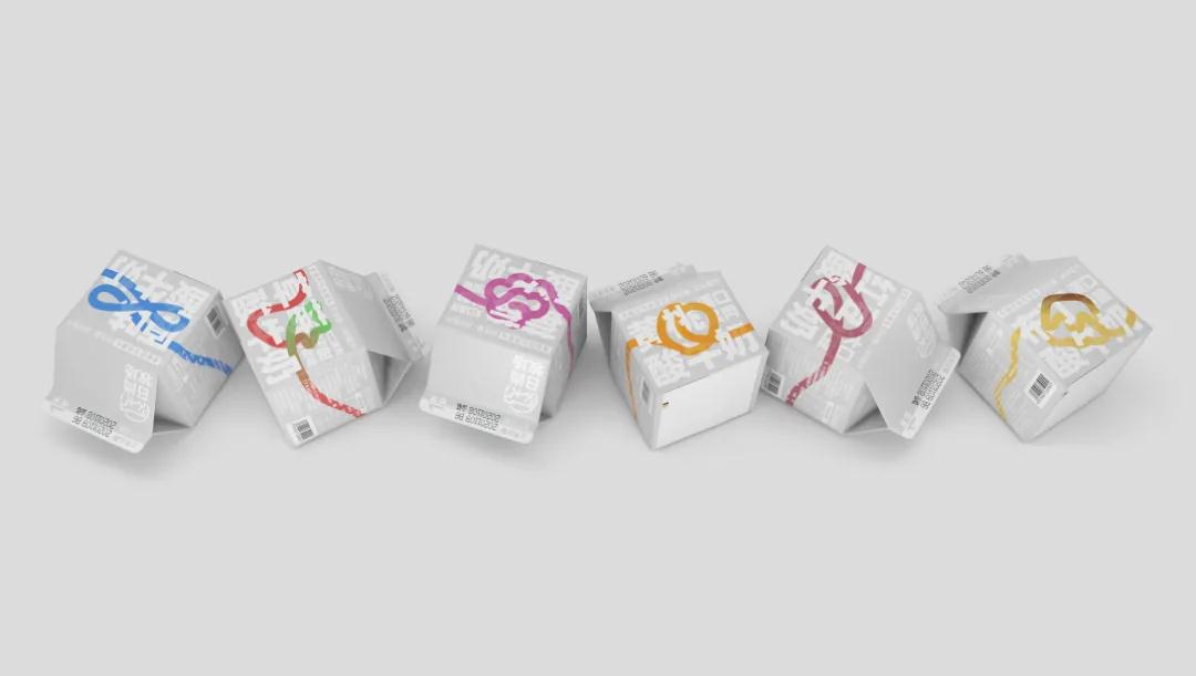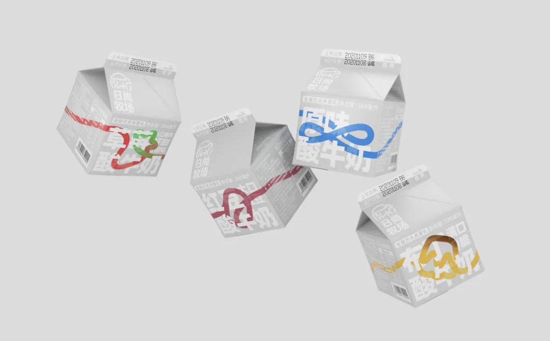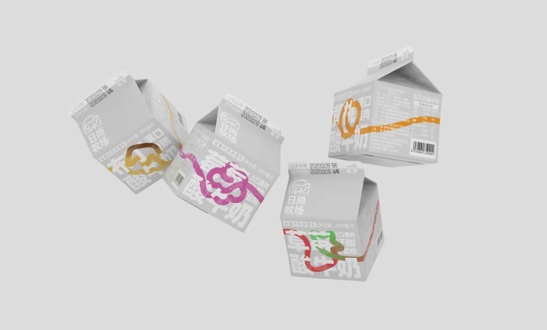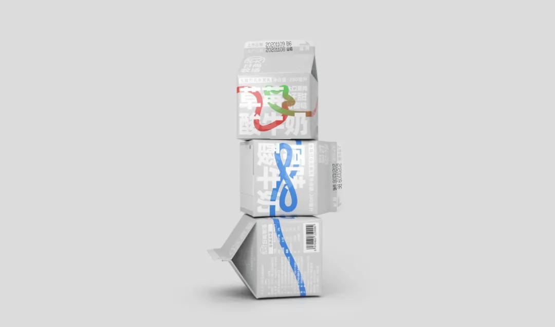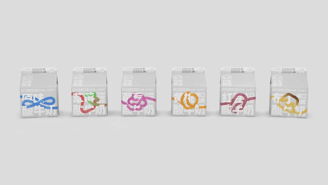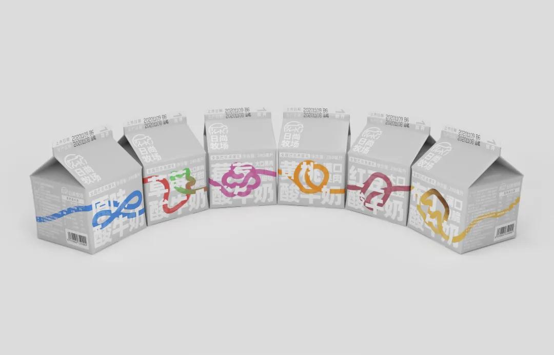 這款酸奶包裝設(shè)計,簡約、現(xiàn)代且獨特。有多種口味,根據(jù)不同口味繪制了圖形,這些圖形又匯聚成一條彩繩,格外醒目,鮮明且生動,象征著產(chǎn)品成分的純粹和原料的新鮮。