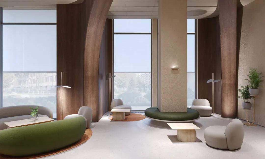 位于烏克蘭基輔的一個商業(yè)項(xiàng)目Kovalska Crystal Park,由當(dāng)?shù)氐氖覂?nèi)設(shè)計(jì)工作室Artem Vakhrin設(shè)計(jì)。Kovalska Crystal Park大堂是一個600多平方米的多功能空間。M區(qū),包括娛樂區(qū)、會議場所、儲藏室、禮賓區(qū)等等。大堂設(shè)計(jì)與建筑整體建筑理念和諧互補(bǔ)。該項(xiàng)目使用了自然紋理的暖色調(diào)。其突出的內(nèi)部元素,如柱子、拱門,在視覺上擴(kuò)展了空間,強(qiáng)調(diào)了舒適的氛圍。
