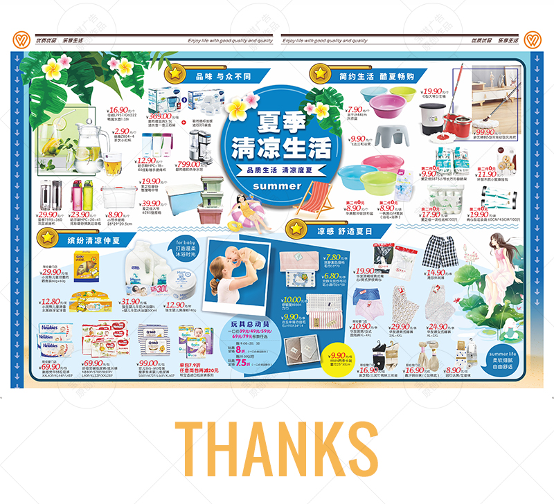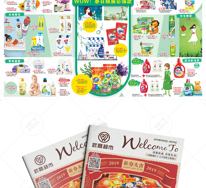 為武商超市全省7個區(qū)域提供全年DM及賣場廣告物料設(shè)計服務(wù)。